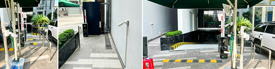 Khi xe ô tô đi vào, đầu đọc thẻ tầm xa ZKTeco UHF10F pro được kích hoạt để đọc thẻ được gắn sẵn trên mỗi xe, kết hợp với Camera IP hồng ngoại 5.0 Megapixel BL-855P48S-S7 sẽ nhận dạng biển số xe và Camera BL-852O38S-S5 chụp toàn cảnh, từ đó kích hoạt nâng thanh chắn Barrier ZKTeco BGM1000 L/R cho phép xe di chuyển vào ra.