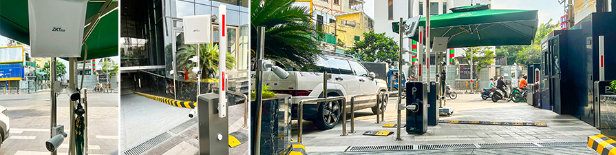 Khi tới bãi xe, nhân viên sẽ dùng thẻ tháng đã đăng ký thông tin để truy cập vào ra. Hệ thống kiểm soát phương tiện ra vào kết hợp với Camera IP hồng ngoại 5.0 Megapixel ZKTeco BL-855P48S-S7 sẽ nhận dạng biển số xe và Camera ZKTeco BL-852O38S-S5 chụp toàn cảnh tích hợp thiết bị cảm biến an toàn VR10 Pro. Khi biển số được kiểm tra chính xác và tương thích với thông tin trên thẻ của người dùng, thanh chắn Barrier BGM1000 L/R sẽ nâng cần chắn lên để cho phép phương tiện đi qua.